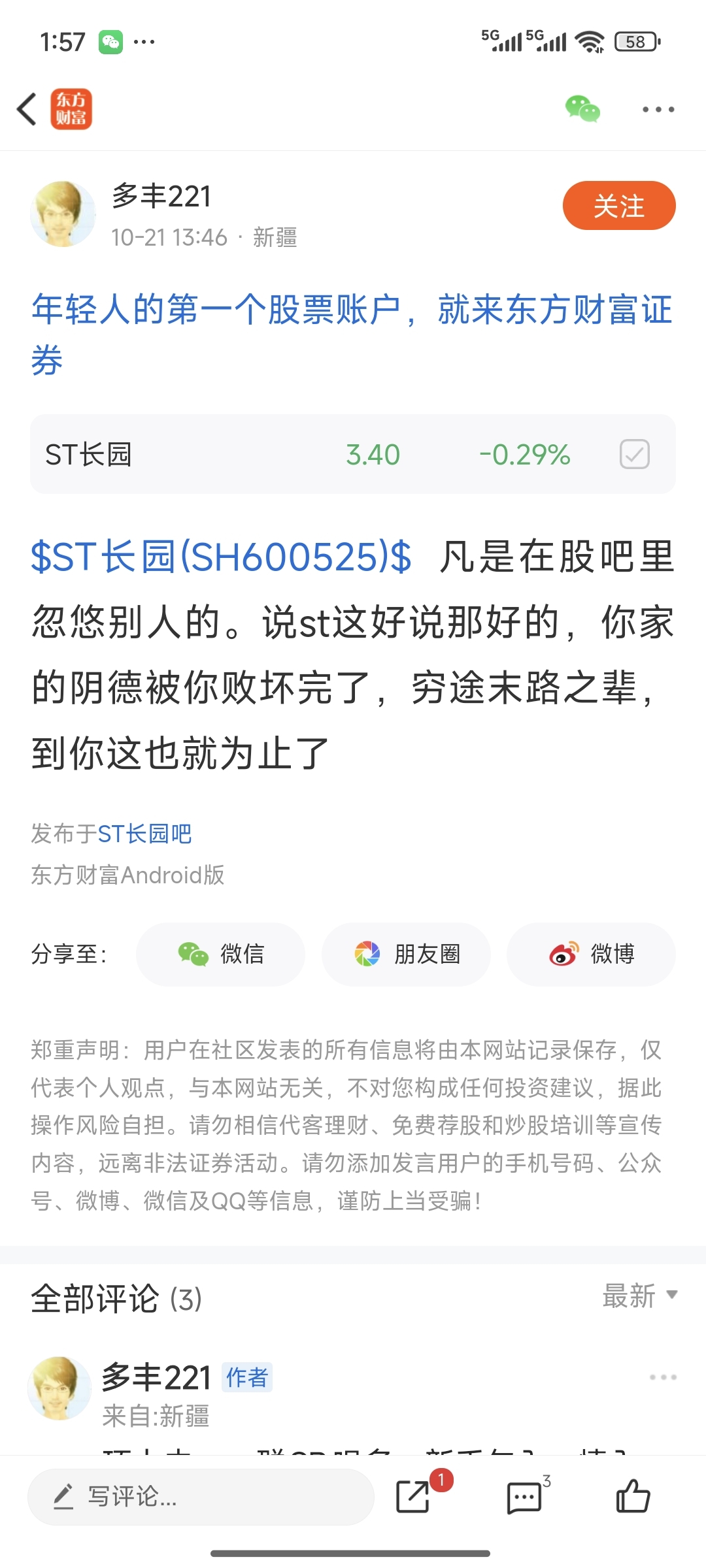 温馨提示: 1.根据《证券法》规定,禁止编造、传播虚假信息或者误导性信息,扰乱证券市场;2.用户在本社区发表的所有资料、言论等仅代表个人观点,与本网站立场无关,不对您构成任何投资建议。用户应基于自己的独立判断,自行决定证券投资并承担相应风险。《东方财富社区管理规定》