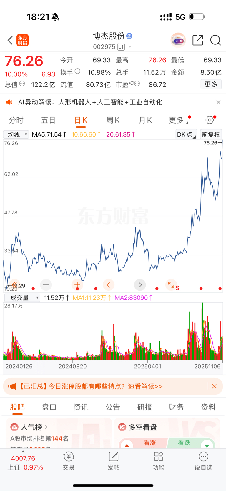 $ST长园(SH600525)$ 博杰股份对标运泰利,博杰股价上天!
