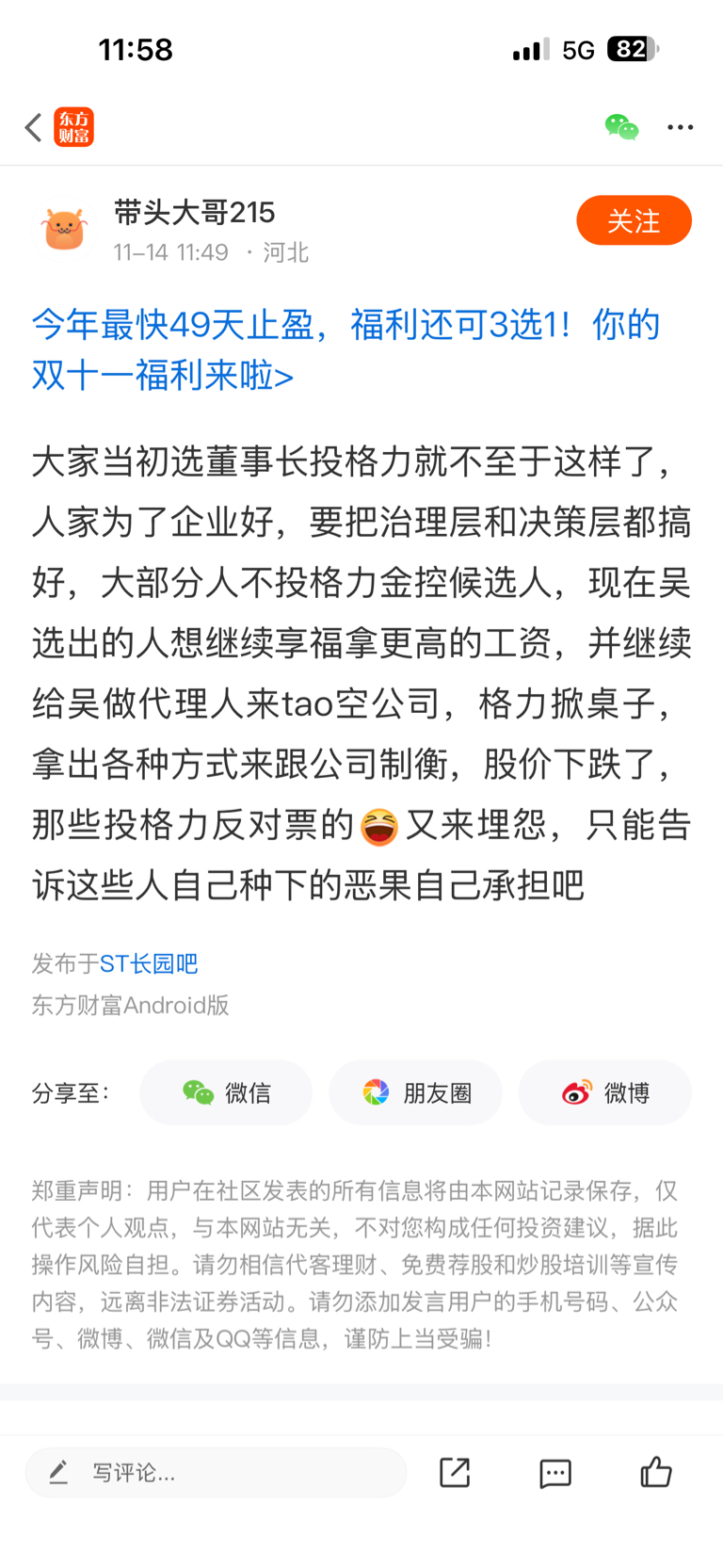 温馨提示: 1.根据《证券法》规定,禁止编造、传播虚假信息或者误导性信息,扰乱证券市场;2.用户在本社区发表的所有资料、言论等仅代表个人观点,与本网站立场无关,不对您构成任何投资建议。用户应基于自己的独立判断,自行决定证券投资并承担相应风险。《东方财富社区管理规定》