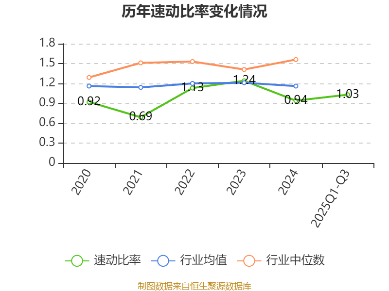 2025年前三季度,公司流动比率为1.22,速动比率为1.03。