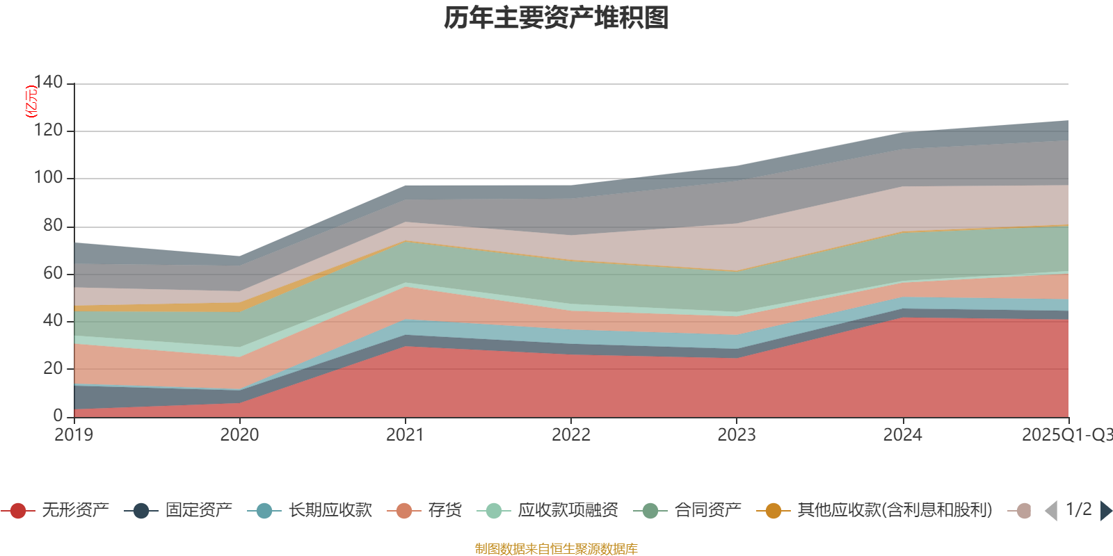 资产重大变化方面,截至2025年三季度末,公司存货较上年末增加77.65%,占公司总资产比重上升3.56个百分点;应收票据及应收账款较上年末减少12.55%,占公司总资产比重下降2.54个百分点;无形资产较上年末减少1.98%,占公司总资产比重下降2.08个百分点;货币资金较上年末增加20.3%,占公司总资产比重上升2.02个百分点。