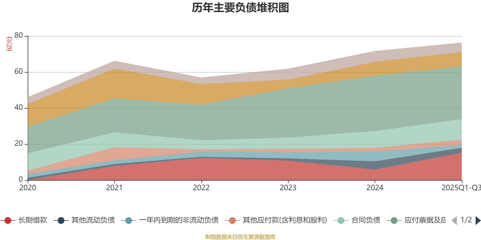 负债重大变化方面,截至2025年三季度末,公司长期借款较上年末增加162.92%,占公司总资产比重上升7.37个百分点;一年内到期的非流动负债较上年末减少69.85%,占公司总资产比重下降3.29个百分点;应付票据及应付账款较上年末减少4.61%,占公司总资产比重下降2.19个百分点;其他流动负债较上年末减少41.41%,占公司总资产比重下降1.69个百分点。