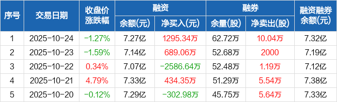 中铁工业:融资净买入1295.34万元,融资余额7.27亿元(10-24)