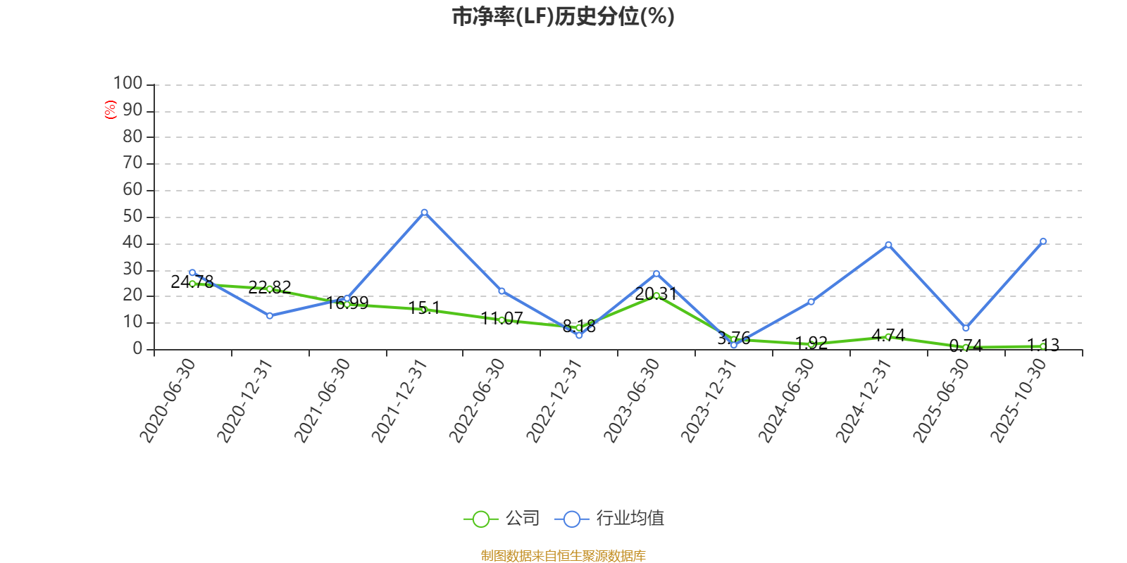 市盈率、市净率为负时,不显示当期分位数,会导致折线图中断。