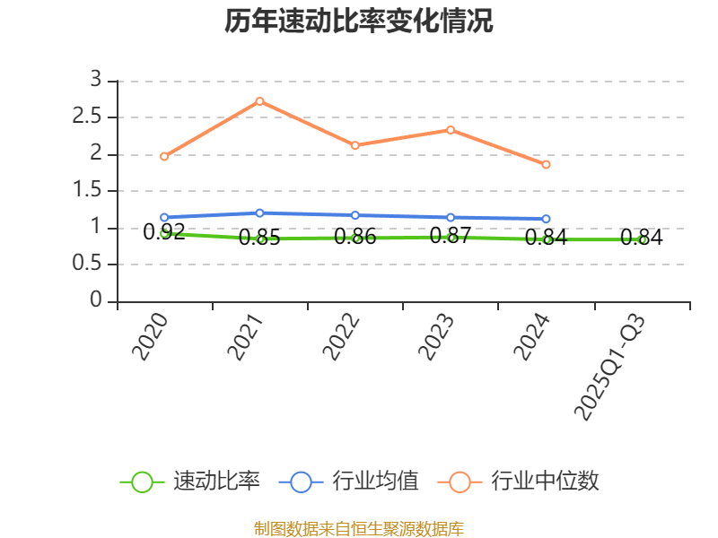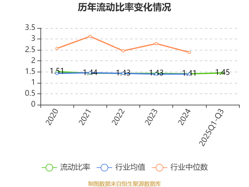 2025年前三季度,公司流动比率为1.45,速动比率为0.84。
