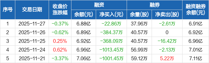中铁工业:连续6日融资净偿还累计3244.5万元(11-27)