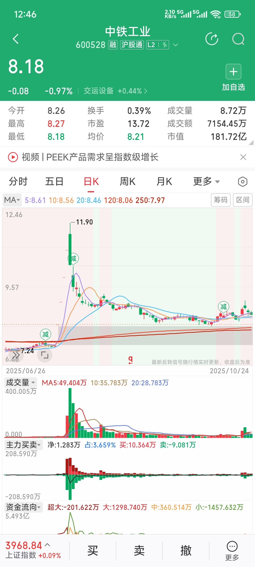 $中铁工业(SH600528)$ 我想知道这尖尖是啥意思?这样子能出货吗?纯粹是为挂人吗?