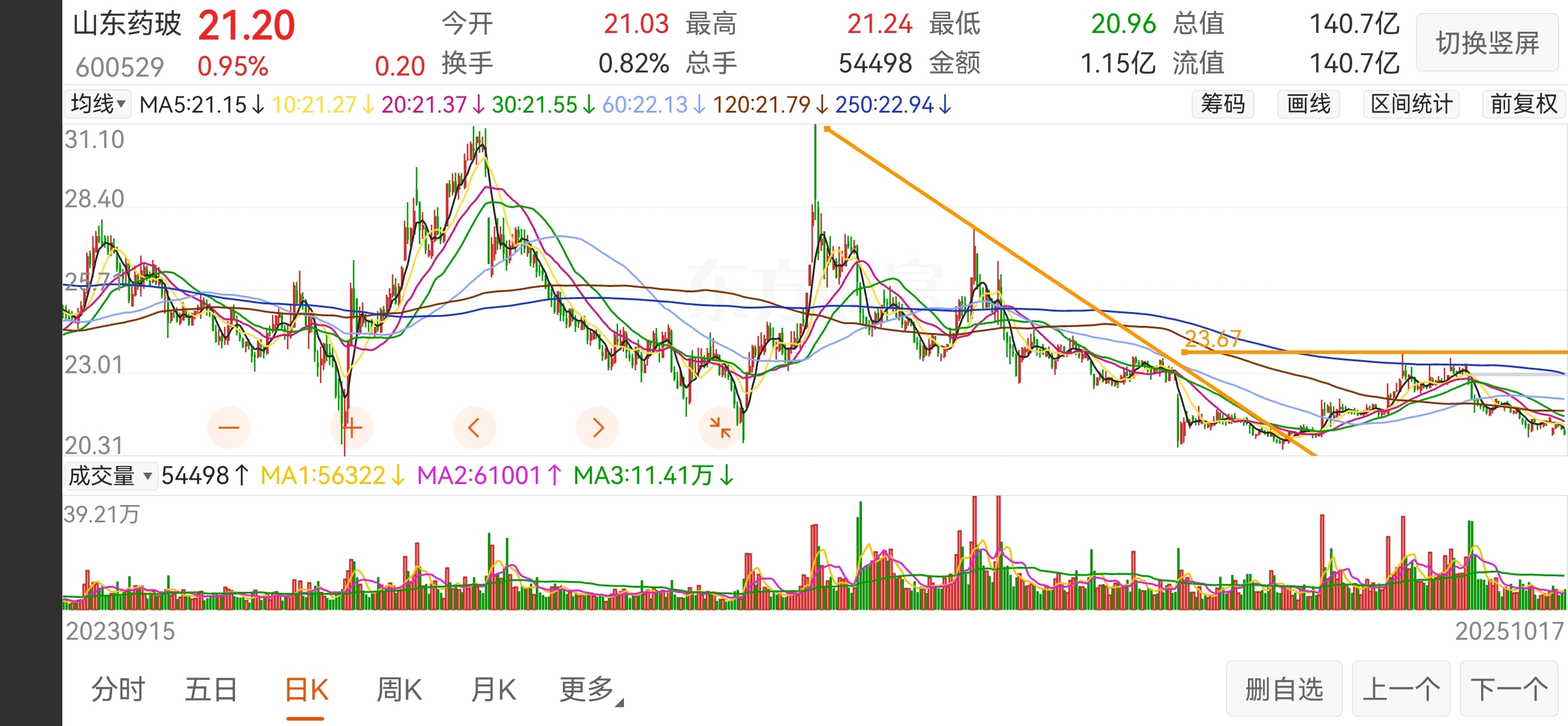 缩量阴跌,说明没有人买,观察前低20附近能否止跌,还有放量止跌信号