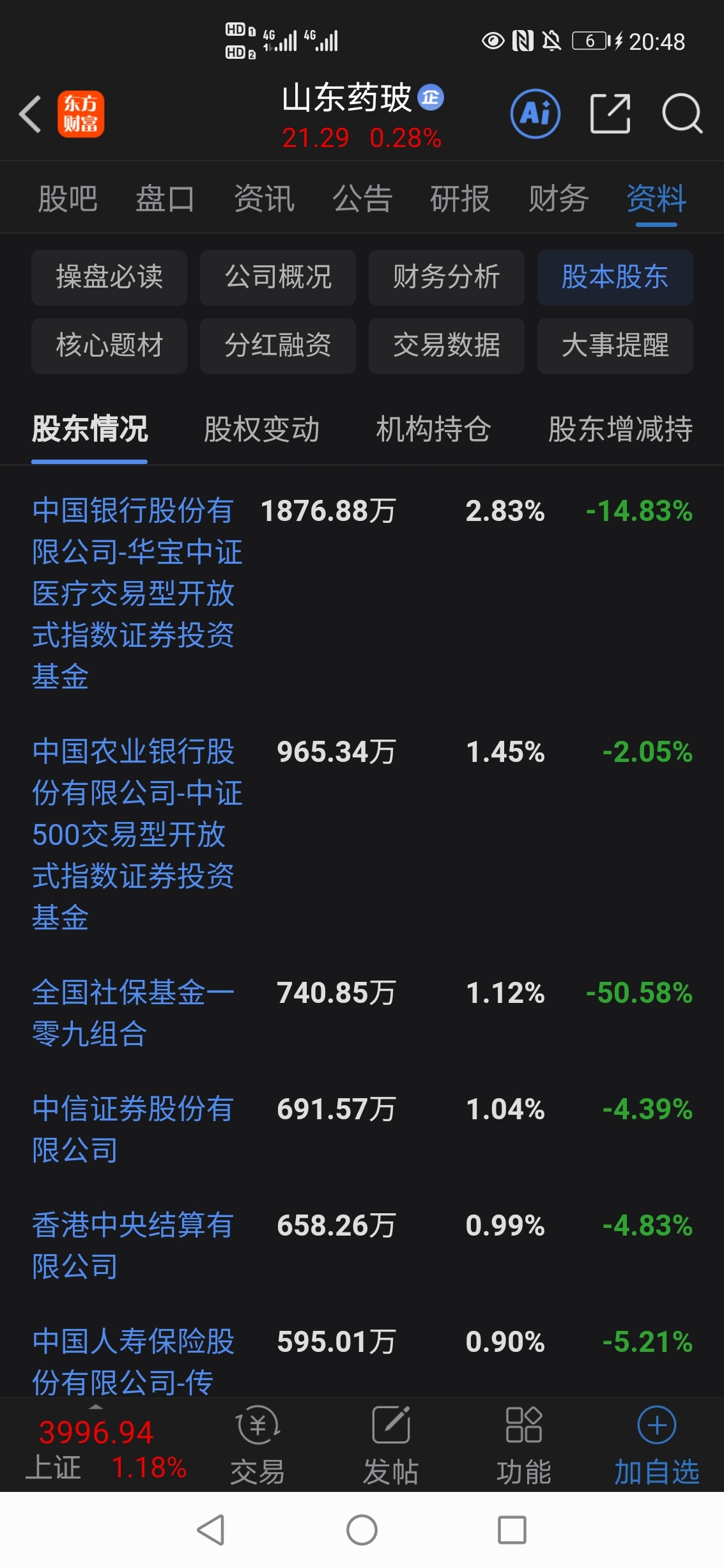 $山东药玻(SH600529)$ 三季度数据:营收和净利润继续下滑,第二到第七大股东都在减持,社保更是减持50%!