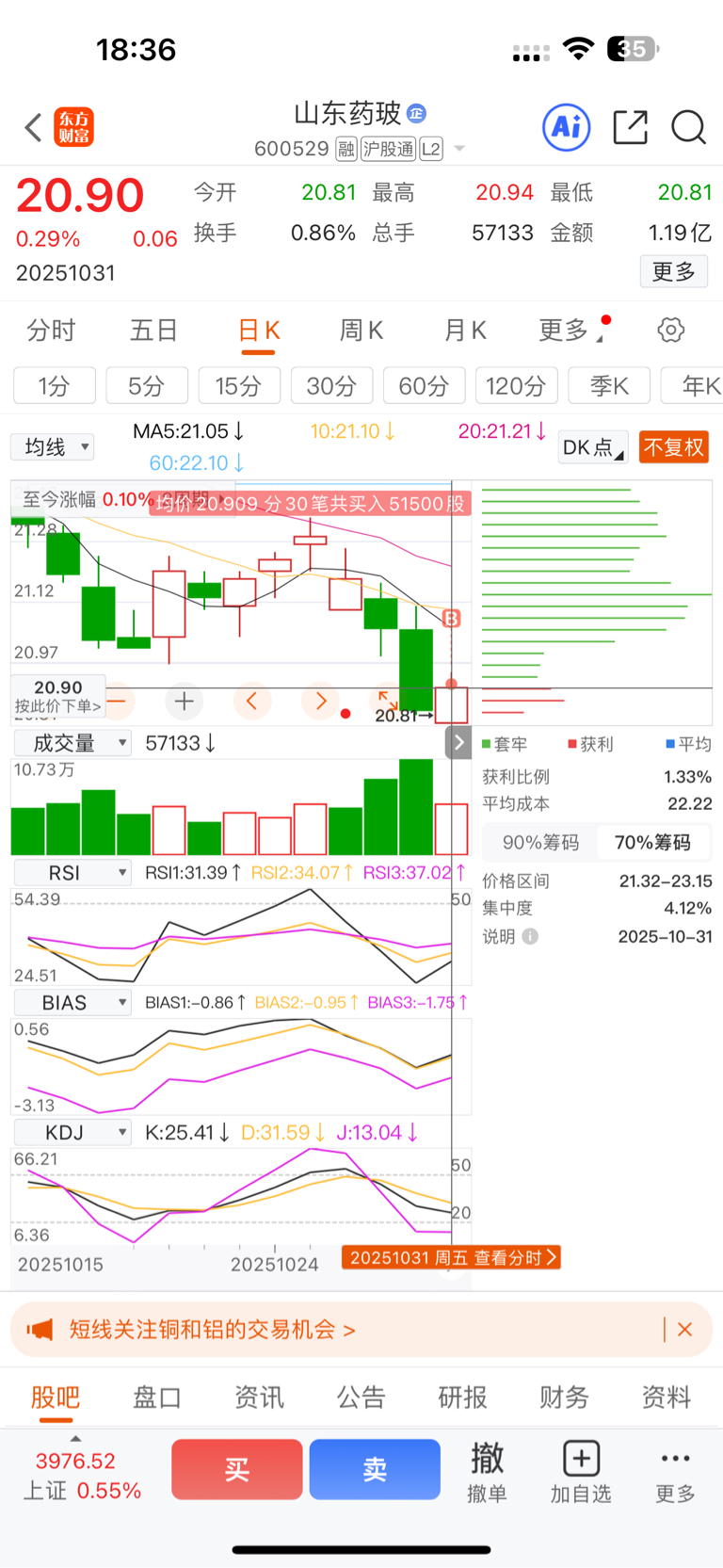 $山东药玻(SH600529)$ 星期五买了十分之一做底仓就被套,慢慢补仓进来吧