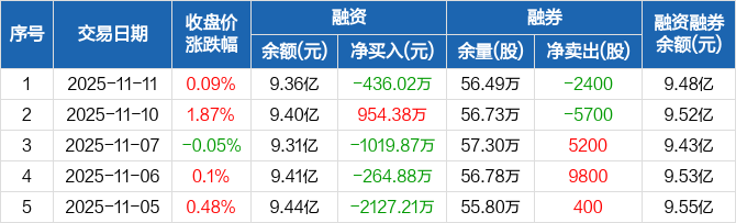 山东药玻:融资净偿还436.02万元,融资余额9.36亿元(11-11)