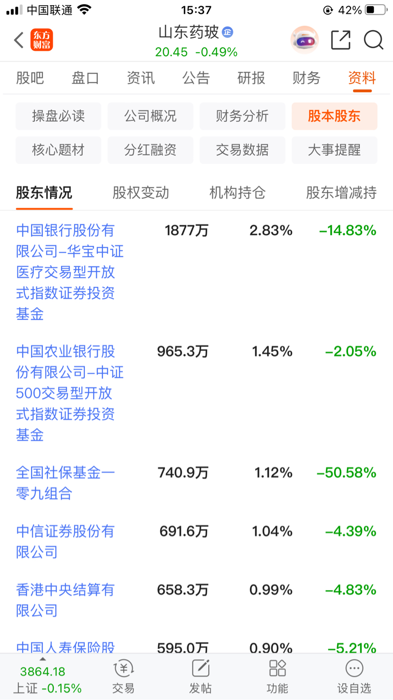 $山东药玻(SH600529)$ 十大股东,没有一家看好山东药玻。社保割肉了50%,预计社保四季度继续割肉。