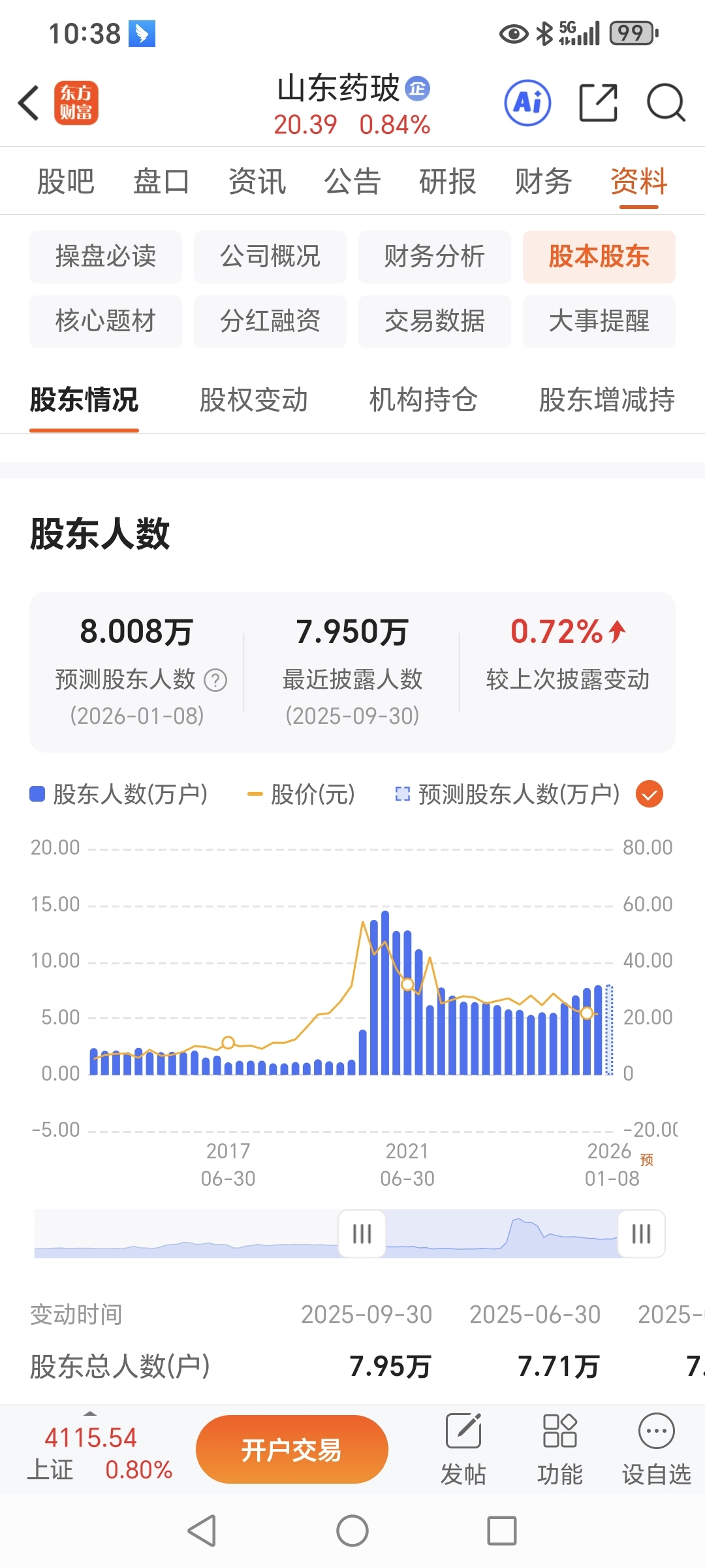$山东药玻(SH600529)$ 自从股东过了4万,药波就是一路下跌