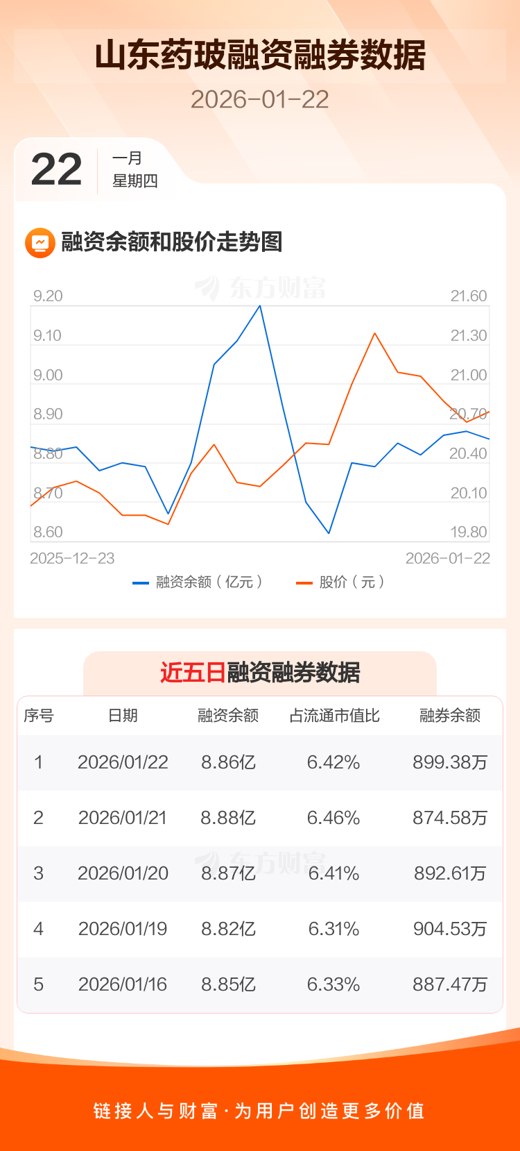交易所最新数据显示,山东药玻于2026年1月22日获融资买入1469.36万元,融资偿还1511.53万元,当日融资净偿还42.17万元。目前,该股融资余额8.86亿,占流通市值比例为6.42%。
