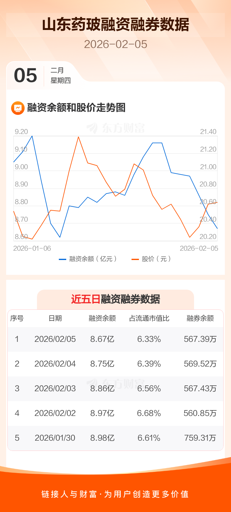交易所最新数据显示,山东药玻于2026年2月5日获融资买入915.07万元,融资偿还1681.63万元,当日融资净偿还766.56万元。目前,该股融资余额8.67亿,占流通市值比例为6.33%。