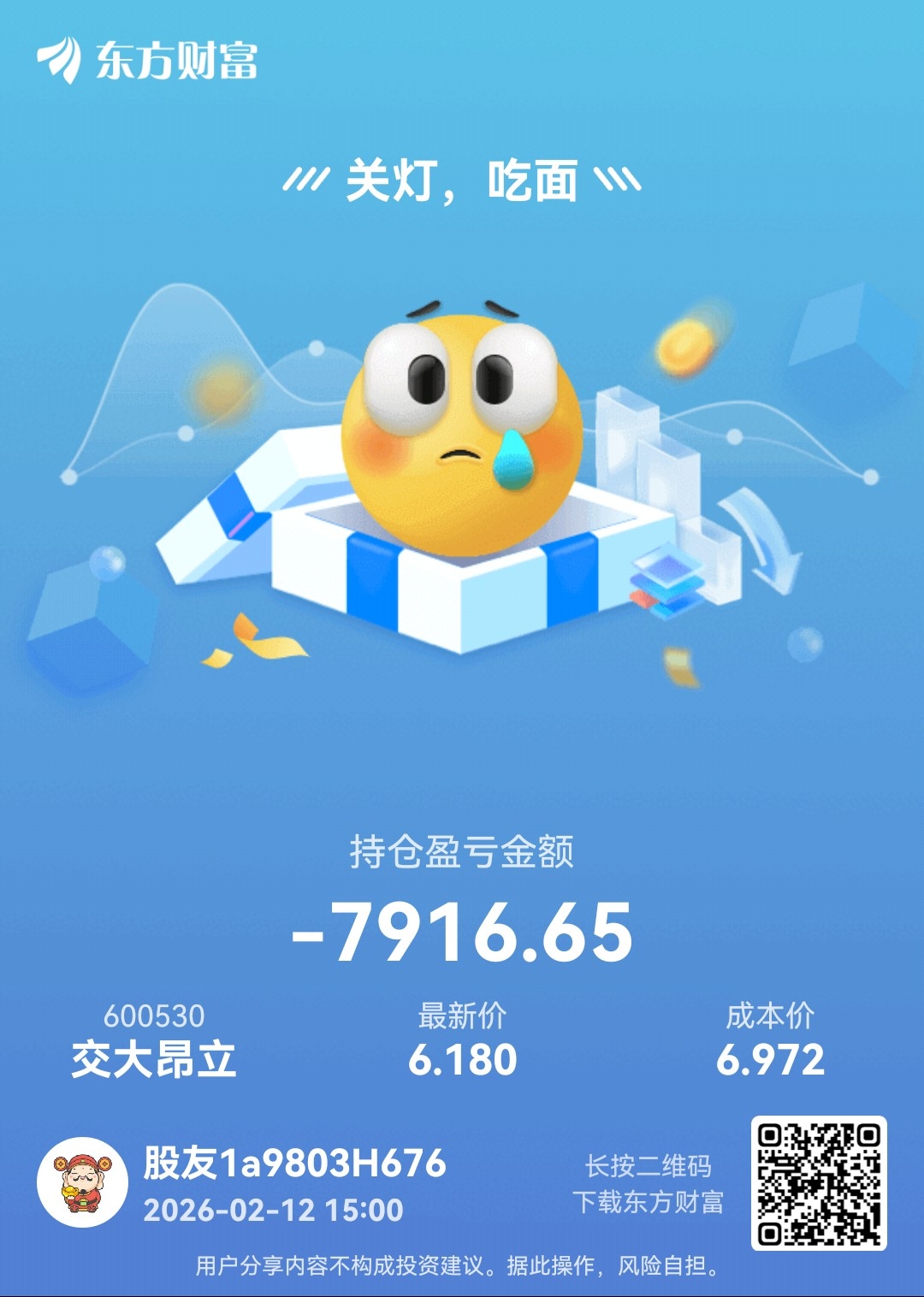 温馨提示: 1.根据《证券法》规定,禁止编造、传播虚假信息或者误导性信息,扰乱证券市场;2.用户在本社区发表的所有资料、言论等仅代表个人观点,与本网站立场无关,不对您构成任何投资建议。用户应基于自己的独立判断,自行决定证券投资并承担相应风险。《东方财富社区管理规定》