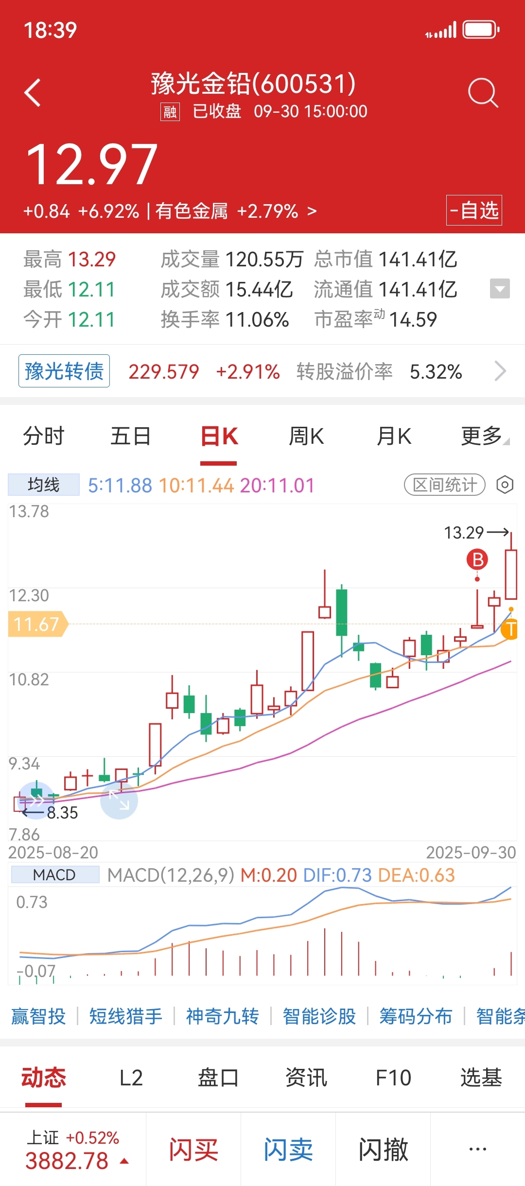 $豫光金铅(SH600531)$ 节前只买600,买少了。
