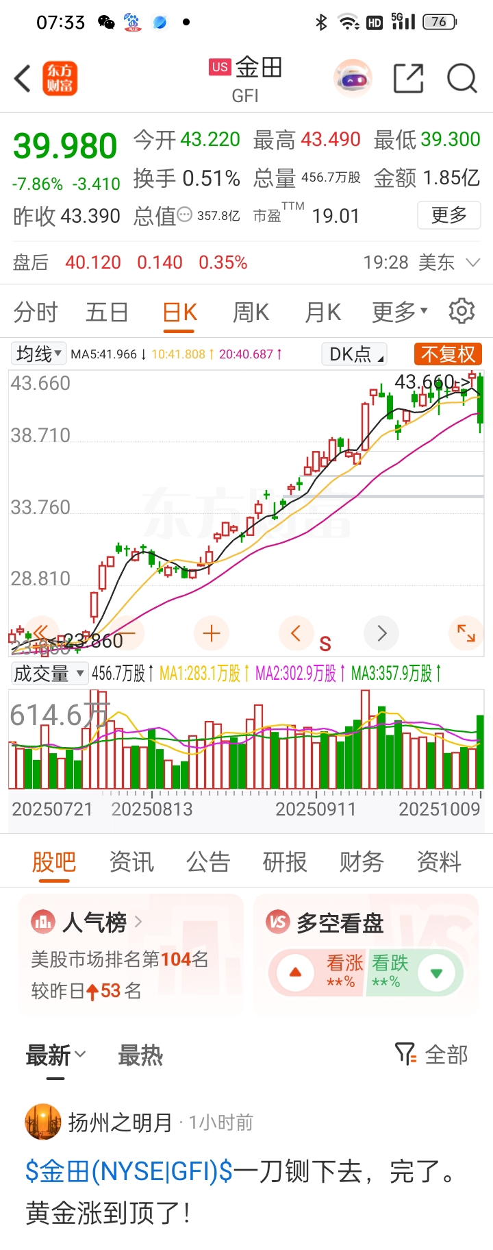 $豫光金铅(SH600531)$ 老美黄金股金田,吃了一个大铡刀!