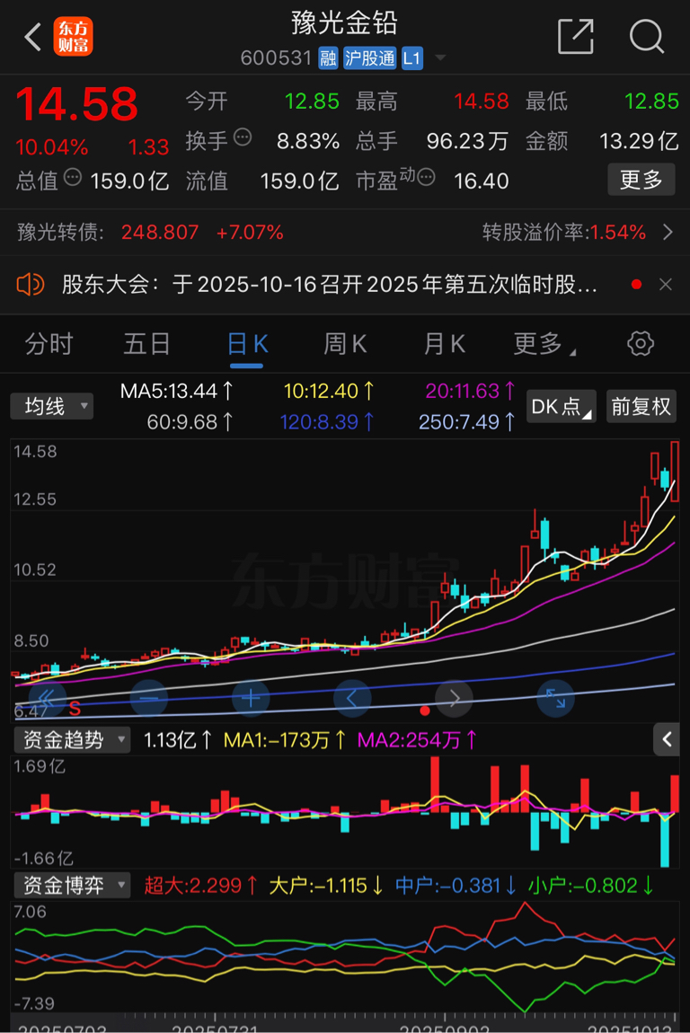 豫光金铅 600531我在9/15号共享了机会,短暂回调过后,这波涨势惊人,今天涨停创新高,有没有把握住机会的朋友,恭喜了