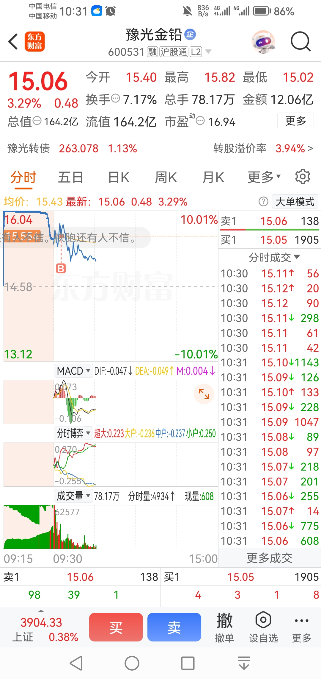 $豫光金铅(SH600531)$ 神马电力挣了四个点走了就算了,非得手贱进来把利润亏出去