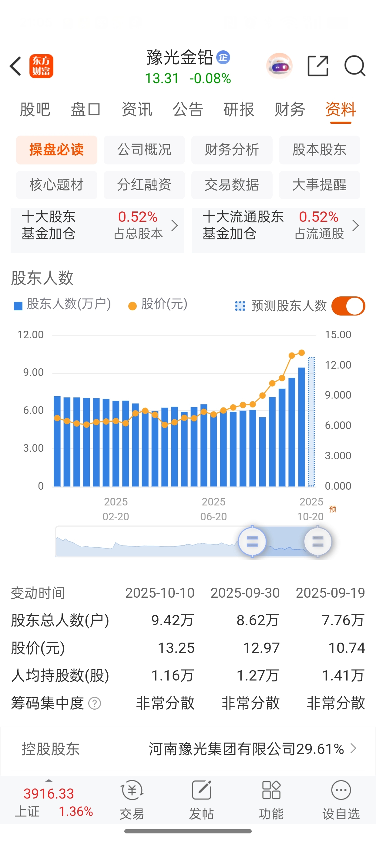 $豫光金铅(SH600531)$ 没注意看股东人数涨这么快,大意了;明天又要吃面了