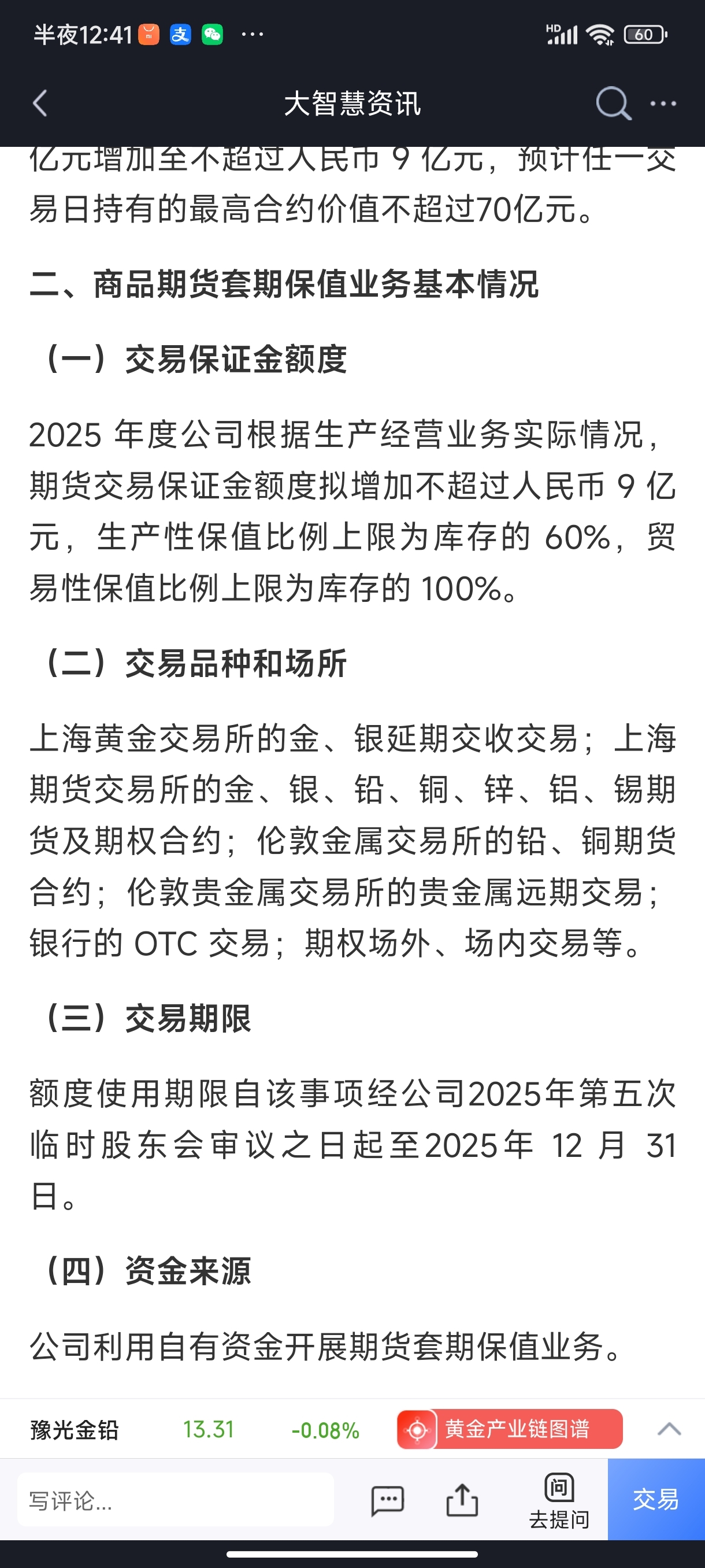 不超过70亿,有没有大佬解释一下,是不是豫北金铅的存货高达70亿?还是说按照9亿来计算,近期可贸易的产品价值90亿?反正我是看不懂。如果期货上涨,代表着卖现货赚钱,期货亏钱,套保面对期货下跌,我库存可以先不卖,但是我在期货把利润拿到手?跪求大佬帮忙解释一下。