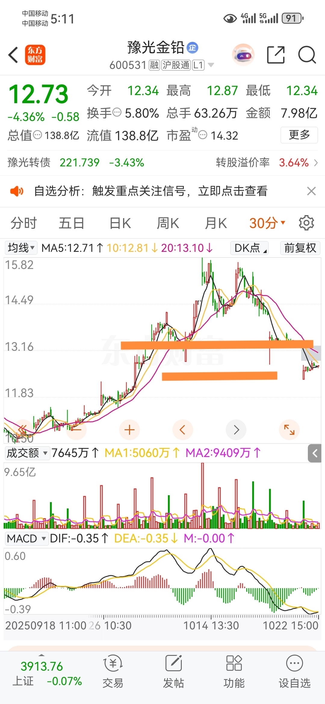 $豫光金铅(SH600531)$ 昨天主力建立了防线,昨晚白银期货大跌,今天主力退而求其次,建立第二防线。希望明天,这道防线不要被击穿!