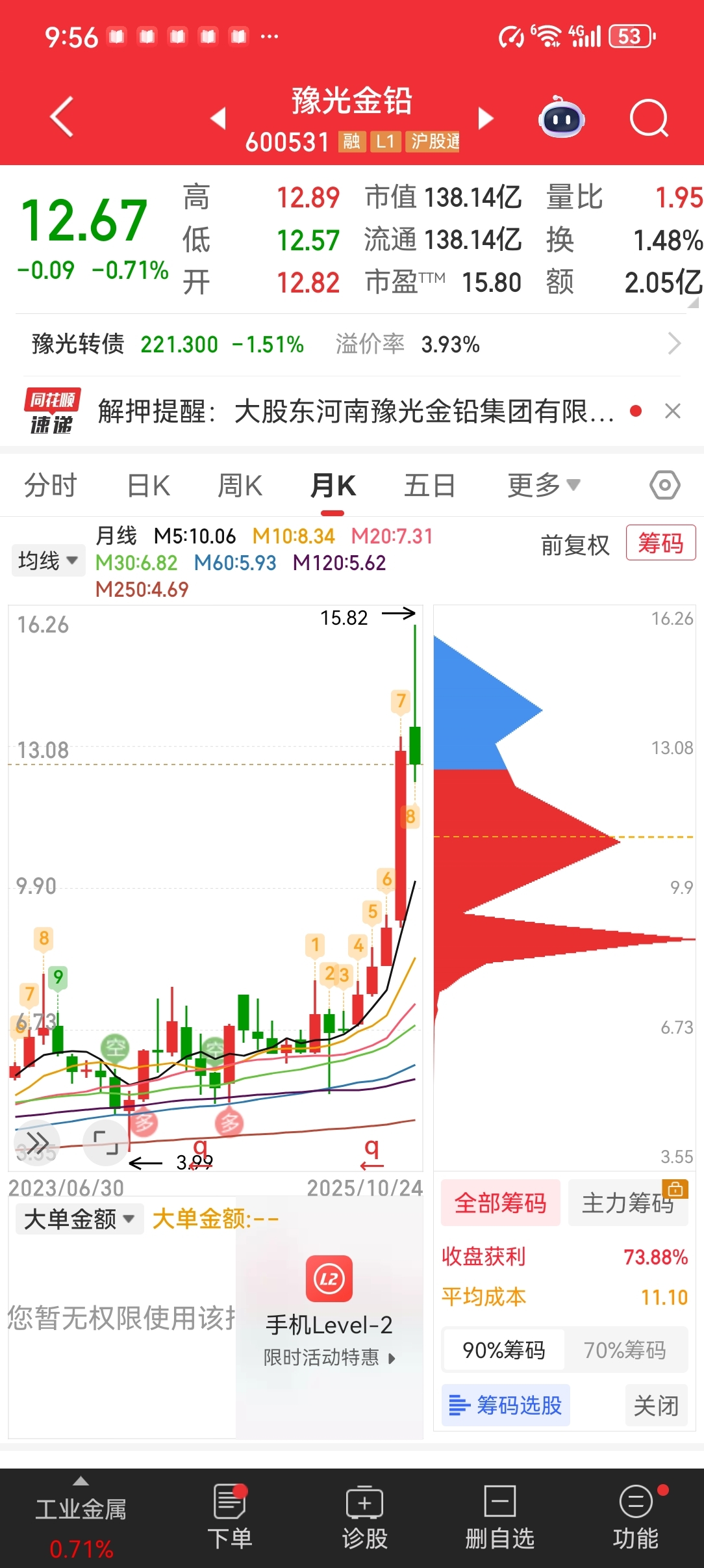 $豫光金铅(SH600531)$ 前两天看还是都套住了,筹码峰怎么又变了,有懂的么?