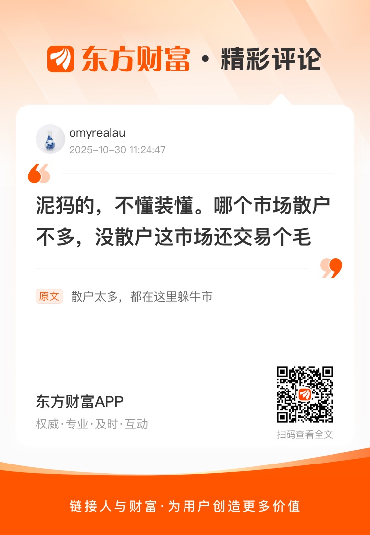 //@omyrealau : 泥犸的,不懂装懂。哪个市场散户不多,没散户这市场还交易个毛