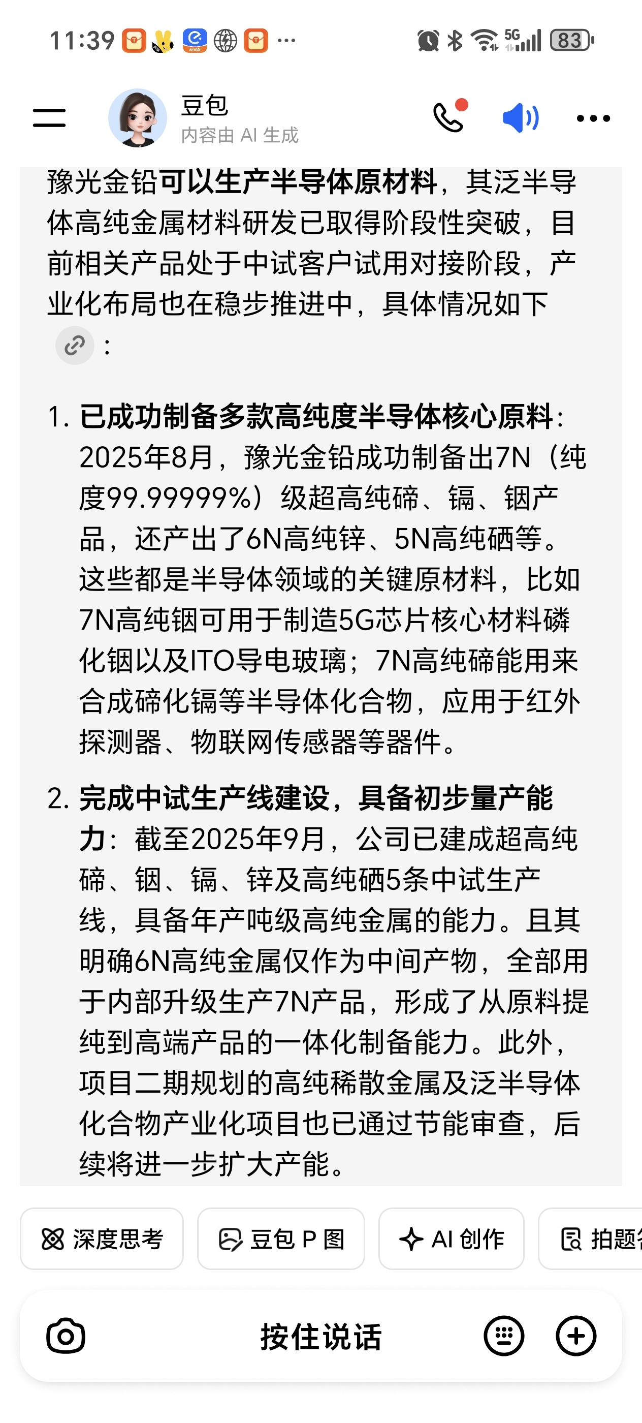 $豫光金铅(SH600531)$ 豆包告诉我豫光金铅可以生产半导体材料,是真的吗?