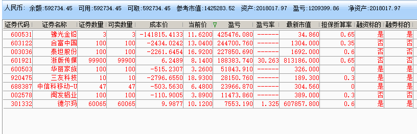爷离开了豫光又怎样???仅就在豫光身上就拿走了42万!!!账户资产已经飙升至20