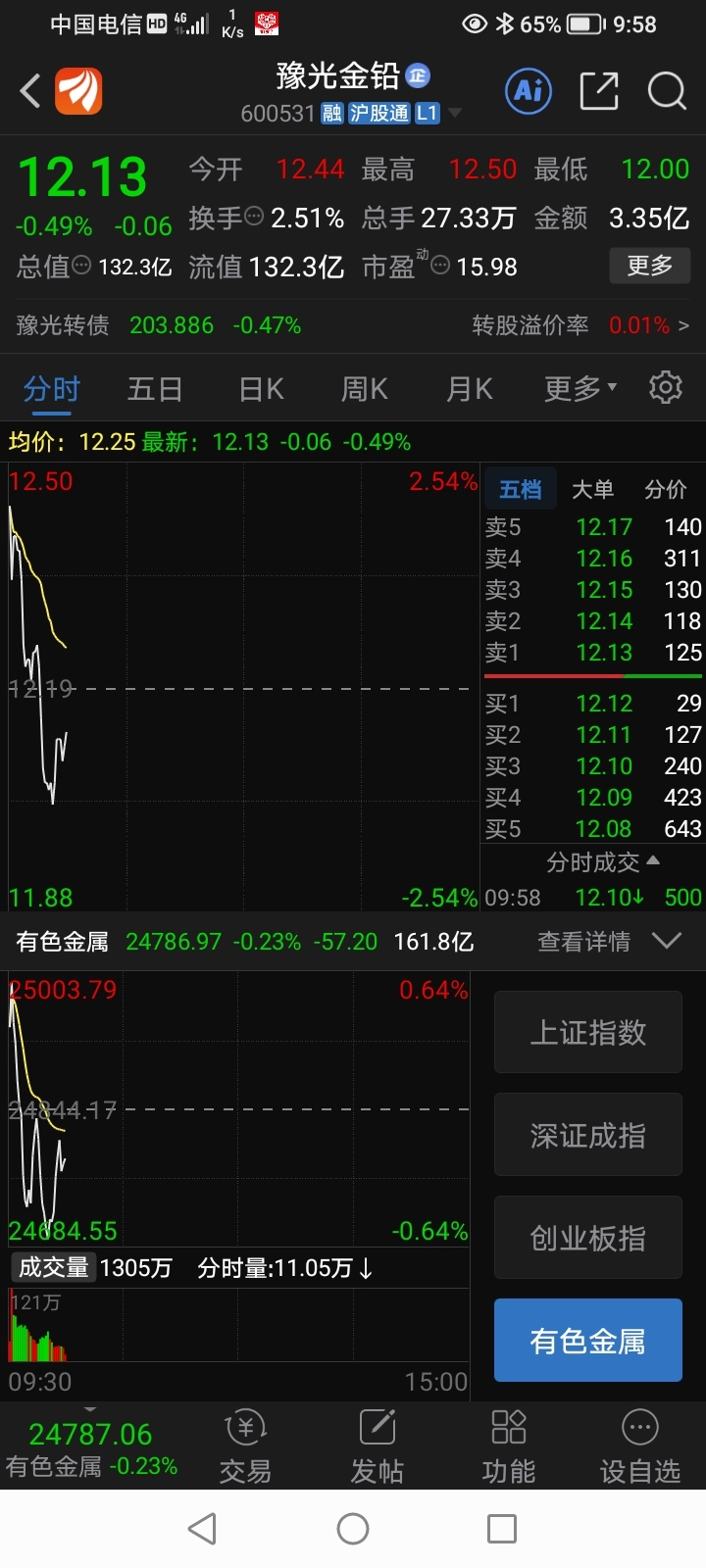豫光金铅,跌与金相关,涨与金无缘,只跟有色金属屁股走!