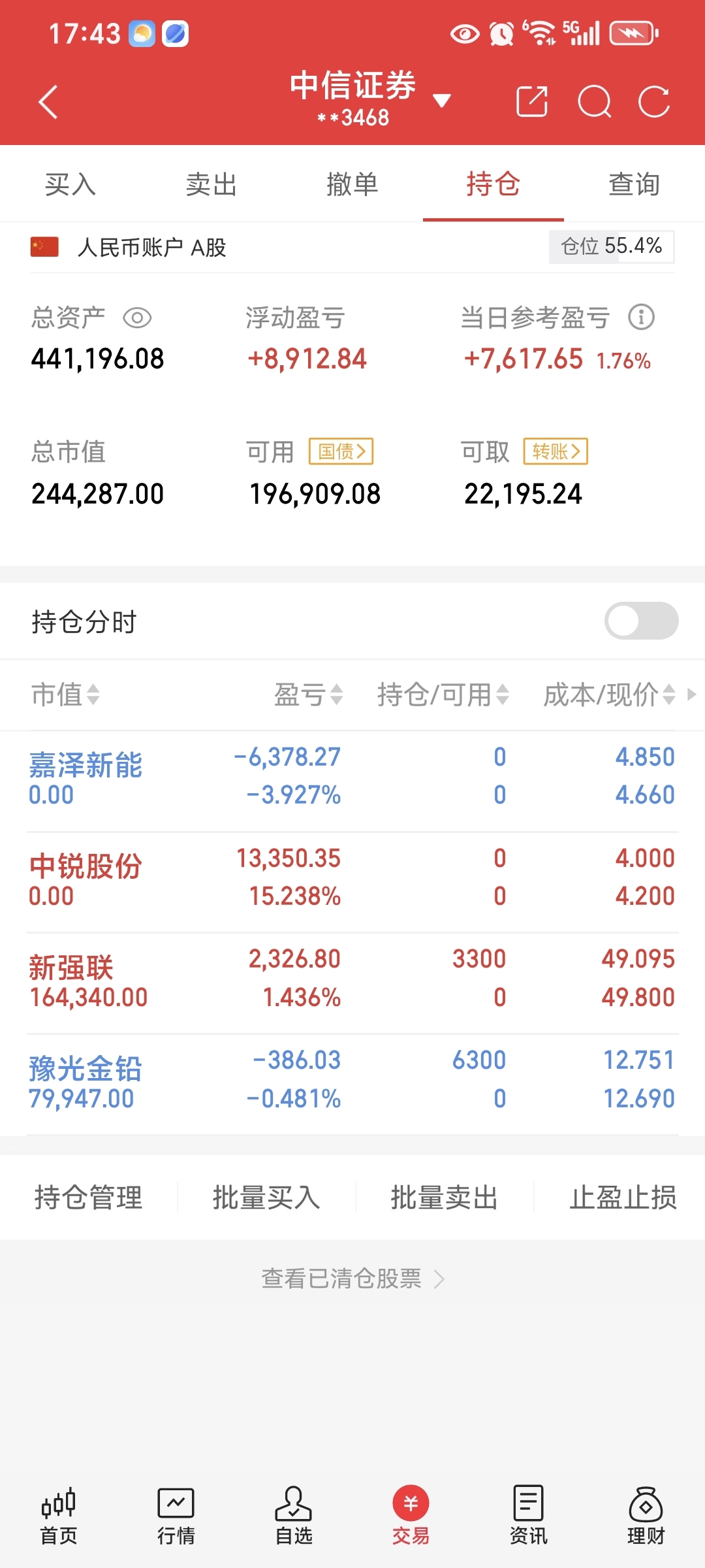 当日参考盈亏:+0.76w