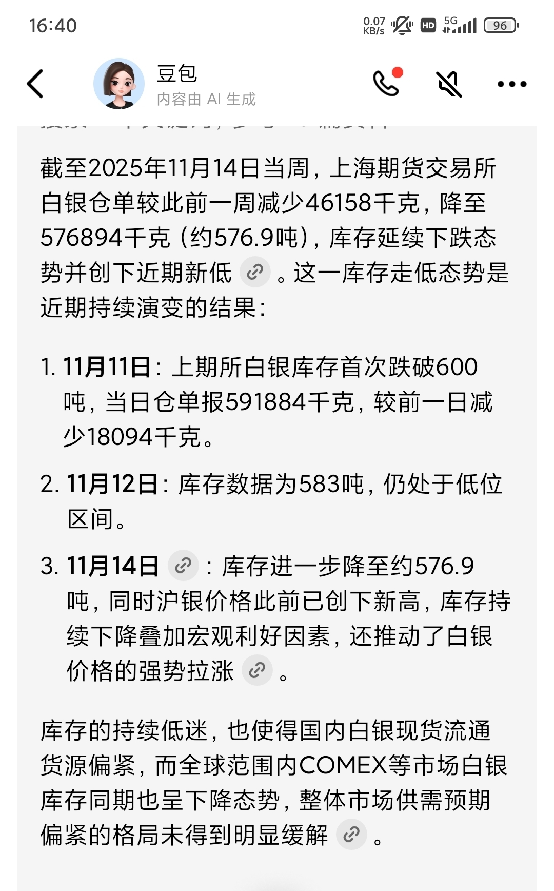 豆包答复是真的,还有谁认为白银不值钱?白银是工业消耗品,都消耗掉了,实际现货库存