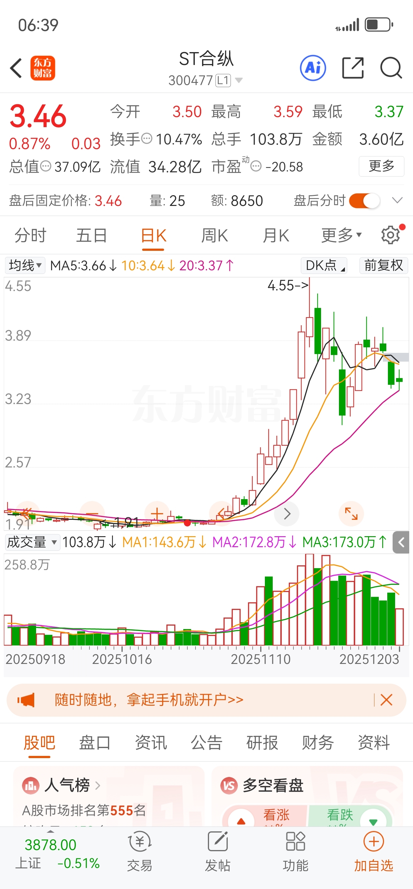 烽烟纵横唱票了,就是开始下跌,这私募打造的粉丝接盘号,大家注意,ST合纵和ST东