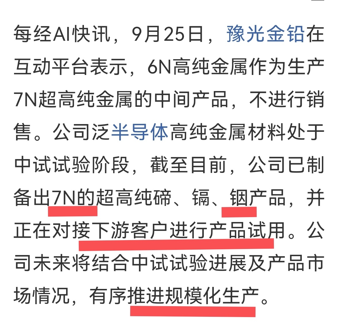 银算啥,一吨才值几个钱,7N的铟才是豫光金铅的战略产品!可惜,主力不愿搞,天天量化,全是一手卖单,