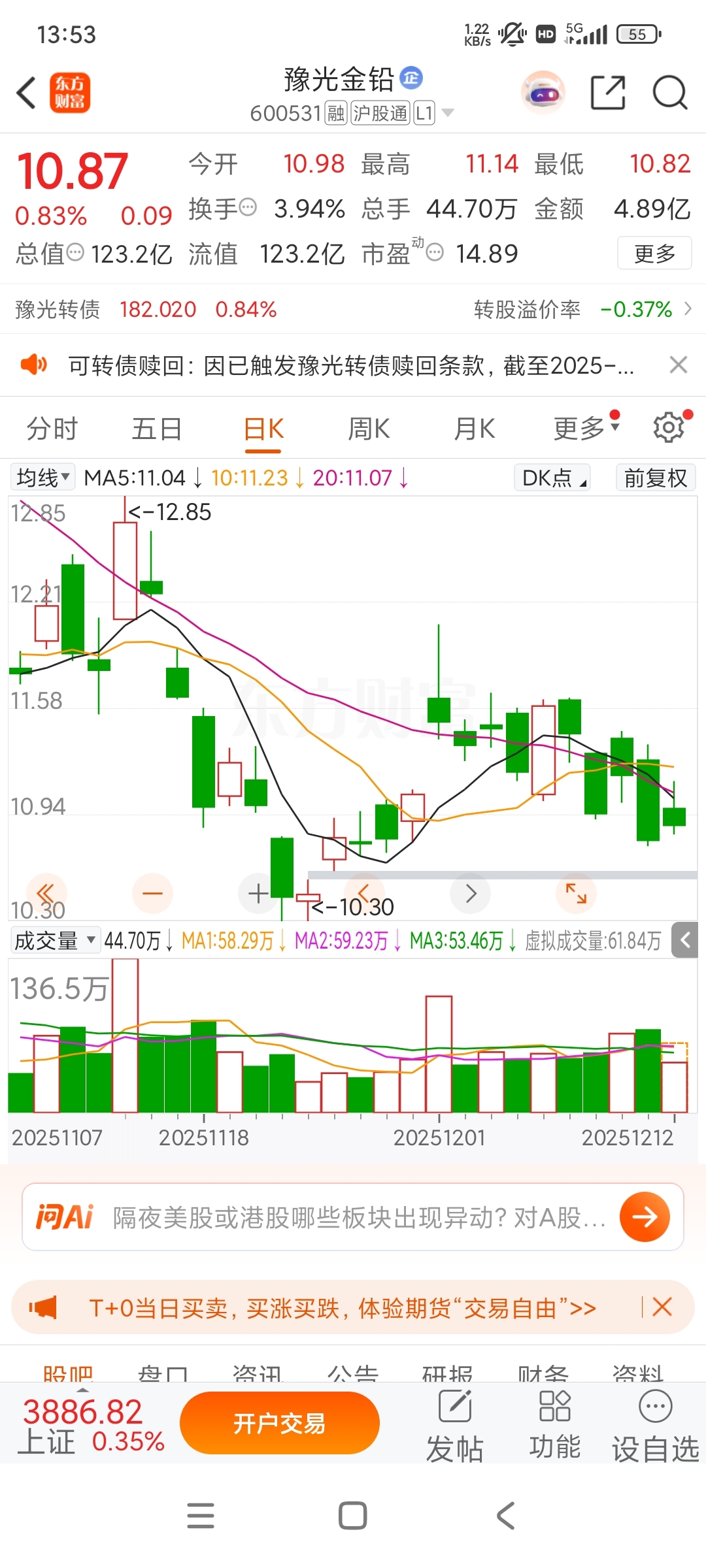 $豫光金铅(SH600531)$ 今天是可转债成交倒数第二天,下个交易日停止交易可转债,该转股的差不多全部转完,理论上成交量今天应该放大才对啊,为什么今天成交量大幅度萎靡?因为没有人卖了,都在买入