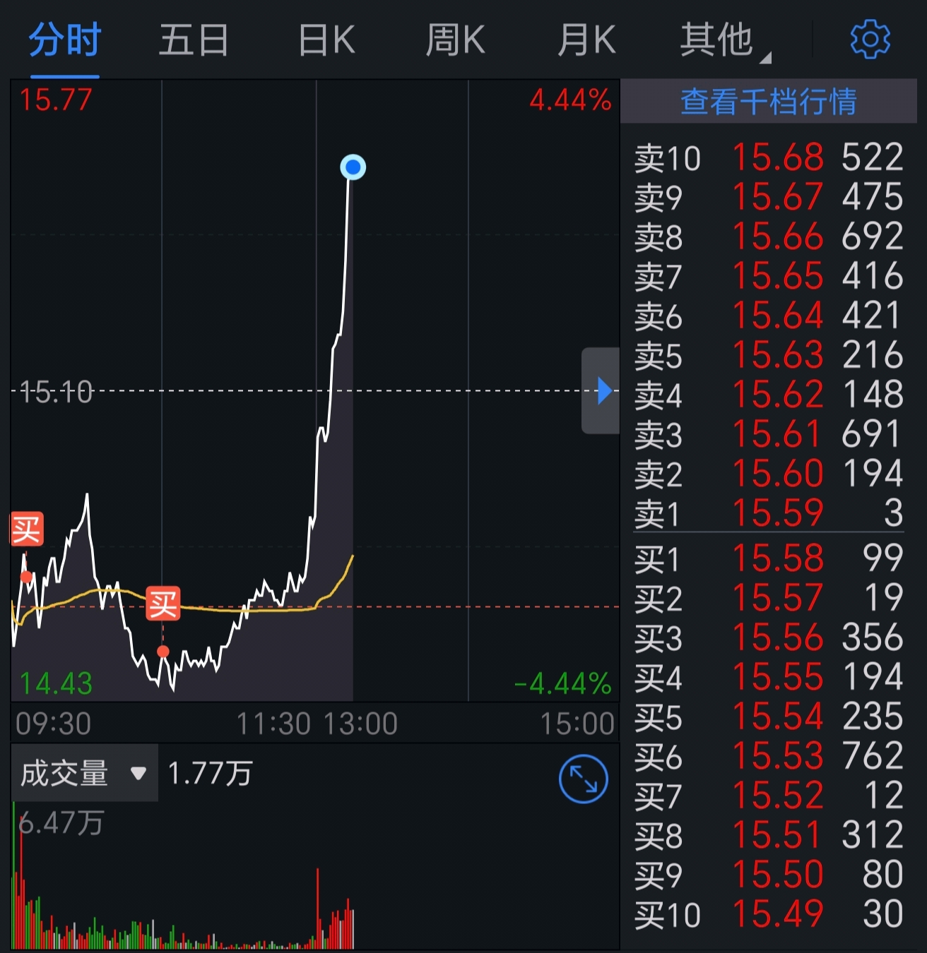 昨天15.3清仓,盘后有点害怕卖飞,没想到主力真给机会