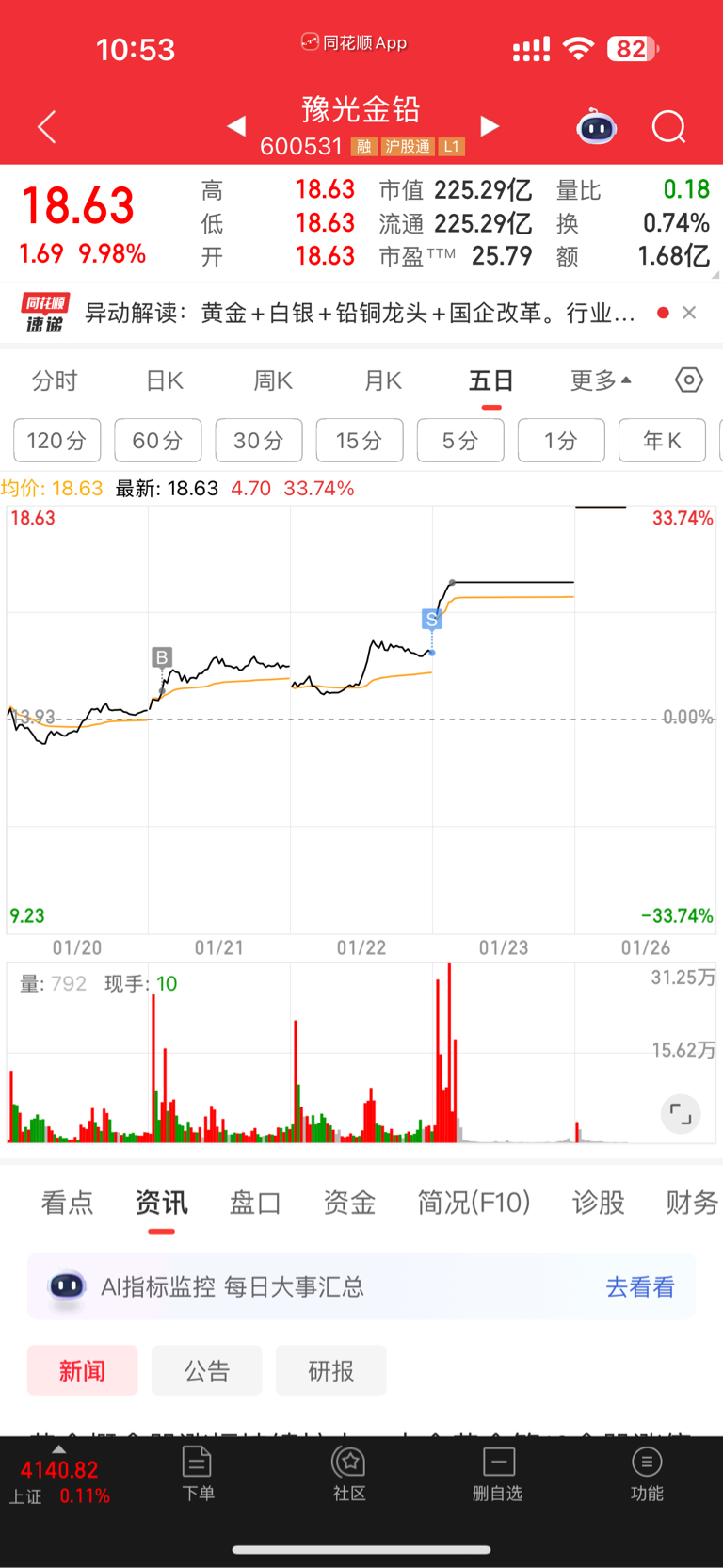 $豫光金铅(SH600531)$ 我只想做个t居然就卖飞了