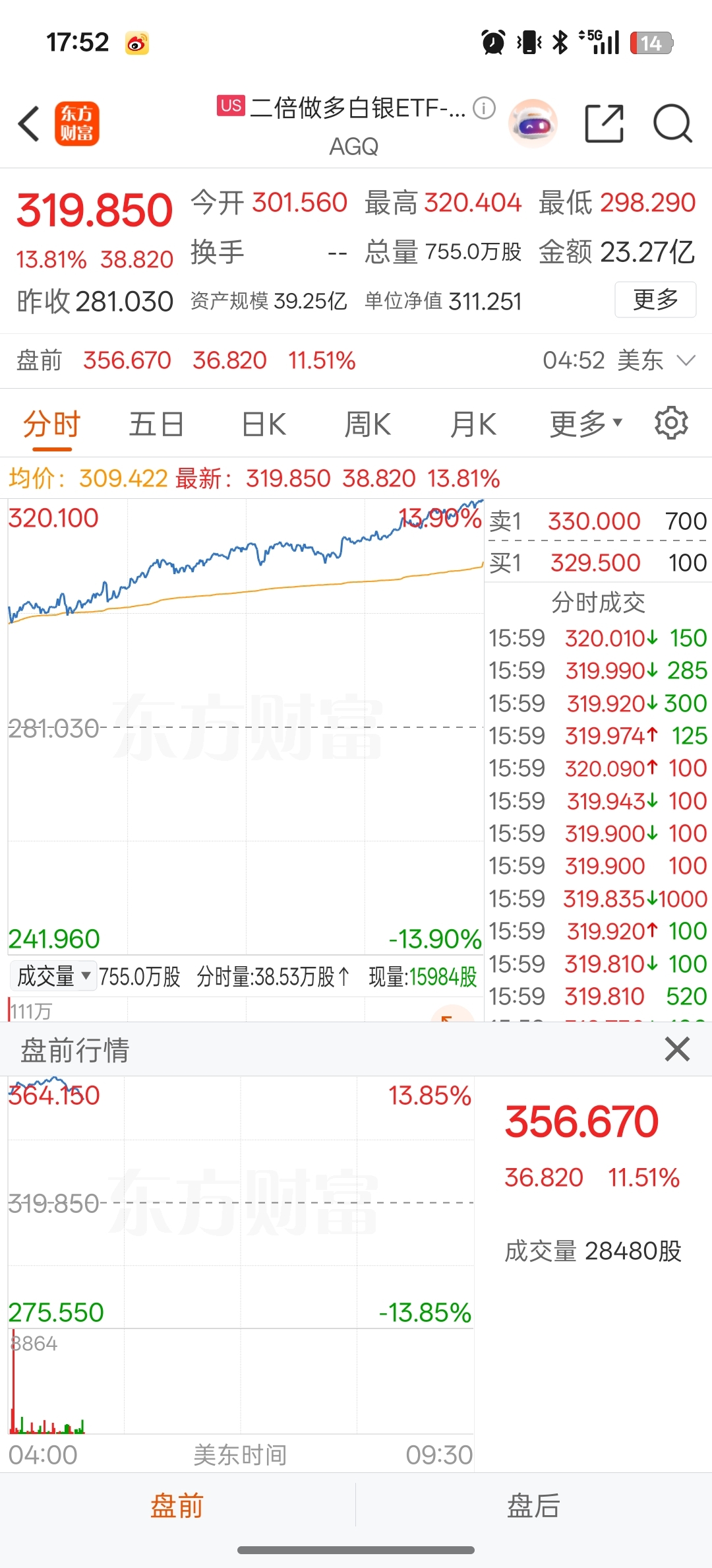 老美的白银盘前又被拉爆了!又涨11.5%!我的天啊!