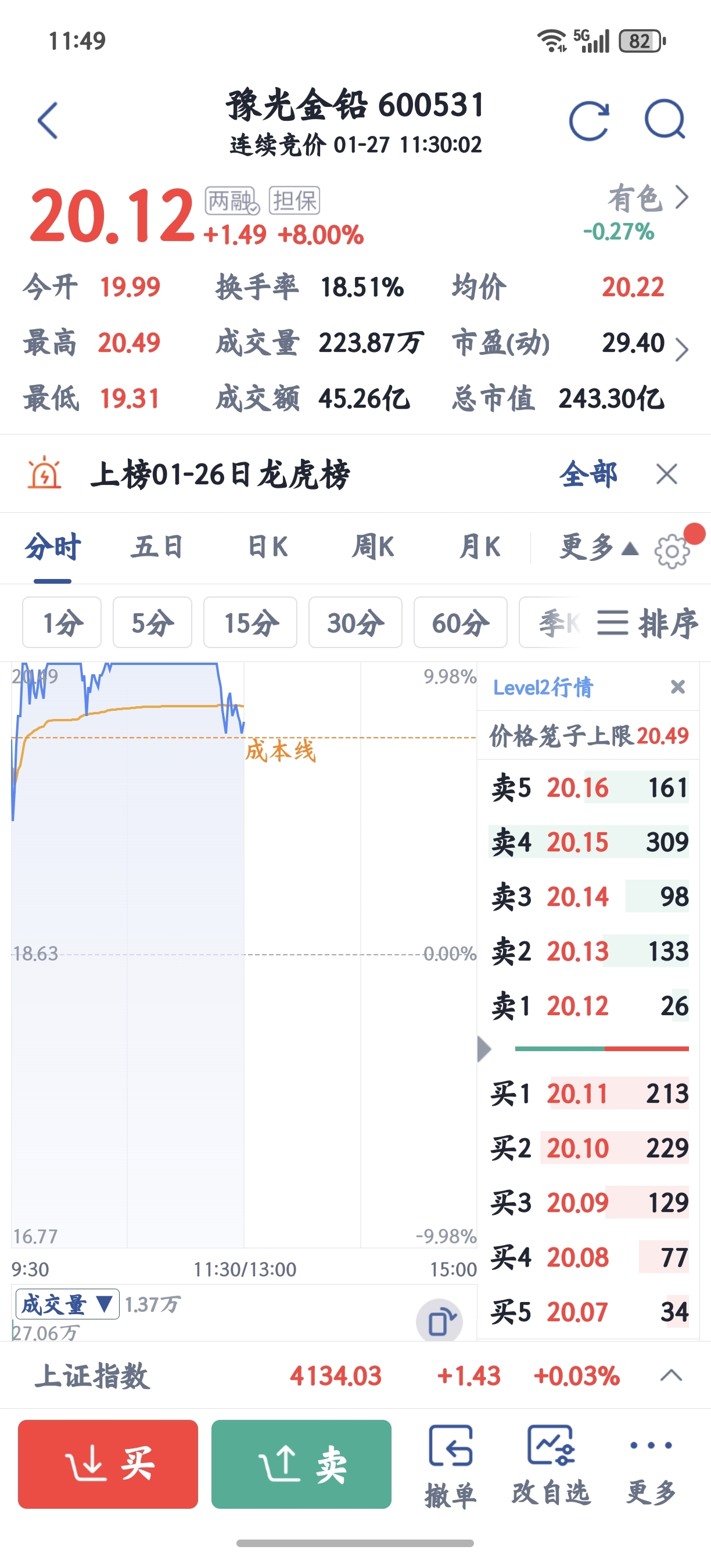$豫光金铅(SH600531)$ 清掉了湖南和有色两个,提前估算豫光开板20.00精准接盘,希望下午有回报