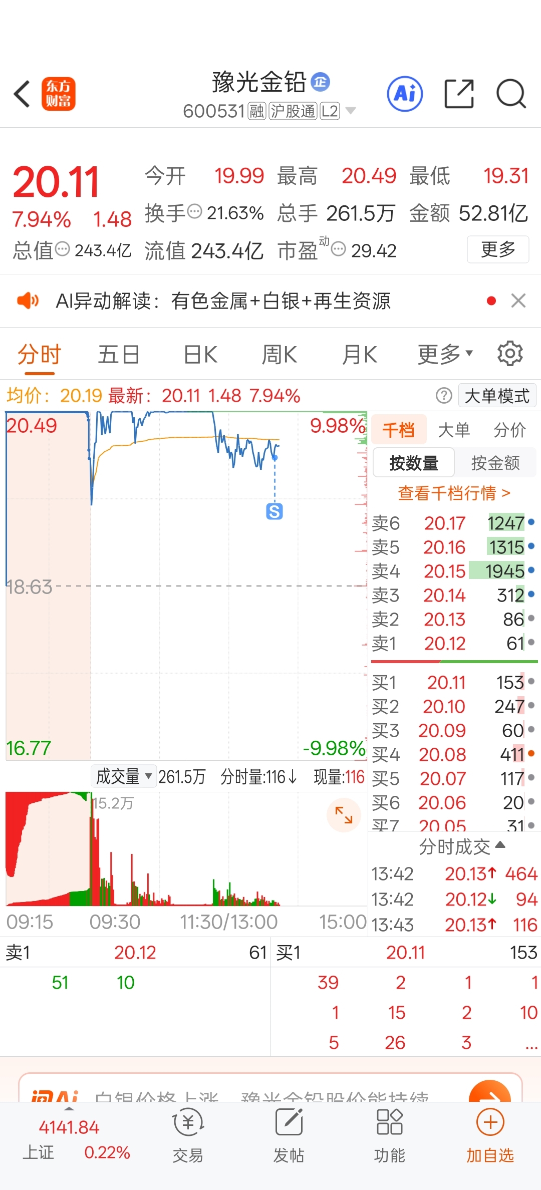 $豫光金铅(SH600531)$ 感谢大家,36个点,留下的发财