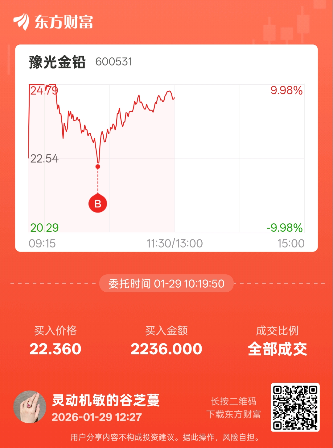 温馨提示: 1.根据《证券法》规定,禁止编造、传播虚假信息或者误导性信息,扰乱证券市场;2.用户在本社区发表的所有资料、言论等仅代表个人观点,与本网站立场无关,不对您构成任何投资建议。用户应基于自己的独立判断,自行决定证券投资并承担相应风险。《东方财富社区管理规定》