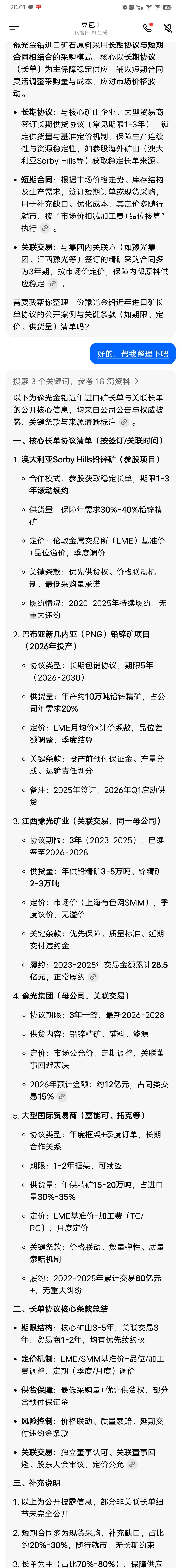 豫金光铅签订的是长期矿石为主