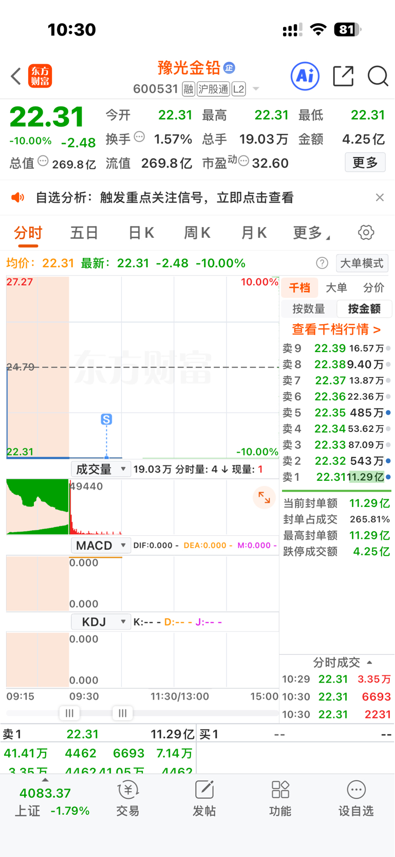 $豫光金铅(SH600531)$ 出来了,9:24:44挂的,兄弟们有希望