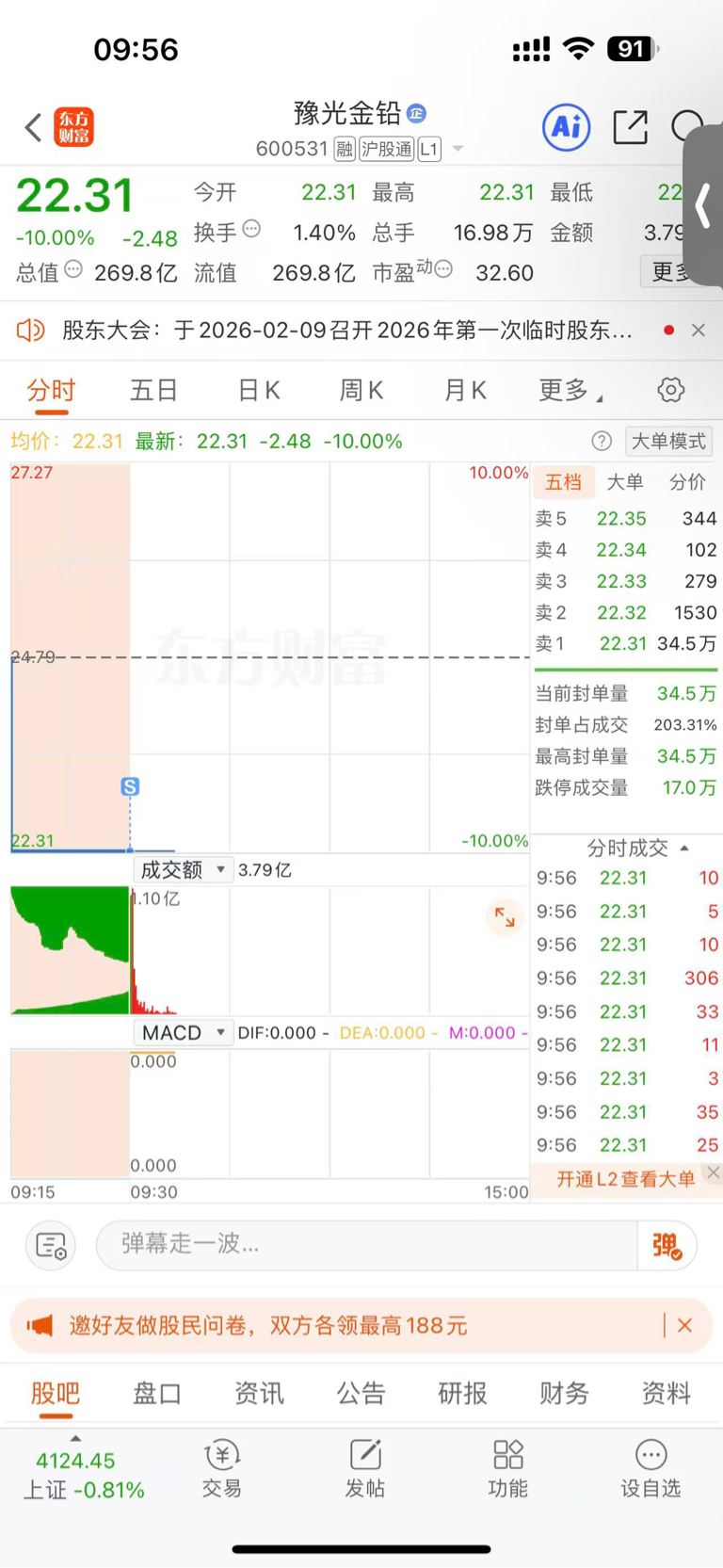 $豫光金铅(SH600531)$ 湖南白银,豫光金铅,一共吃了80个点的利润。好歹是今天一早跑掉了。亏10个点,也还好,兄弟们自求多福了,调整完咱们有缘再见