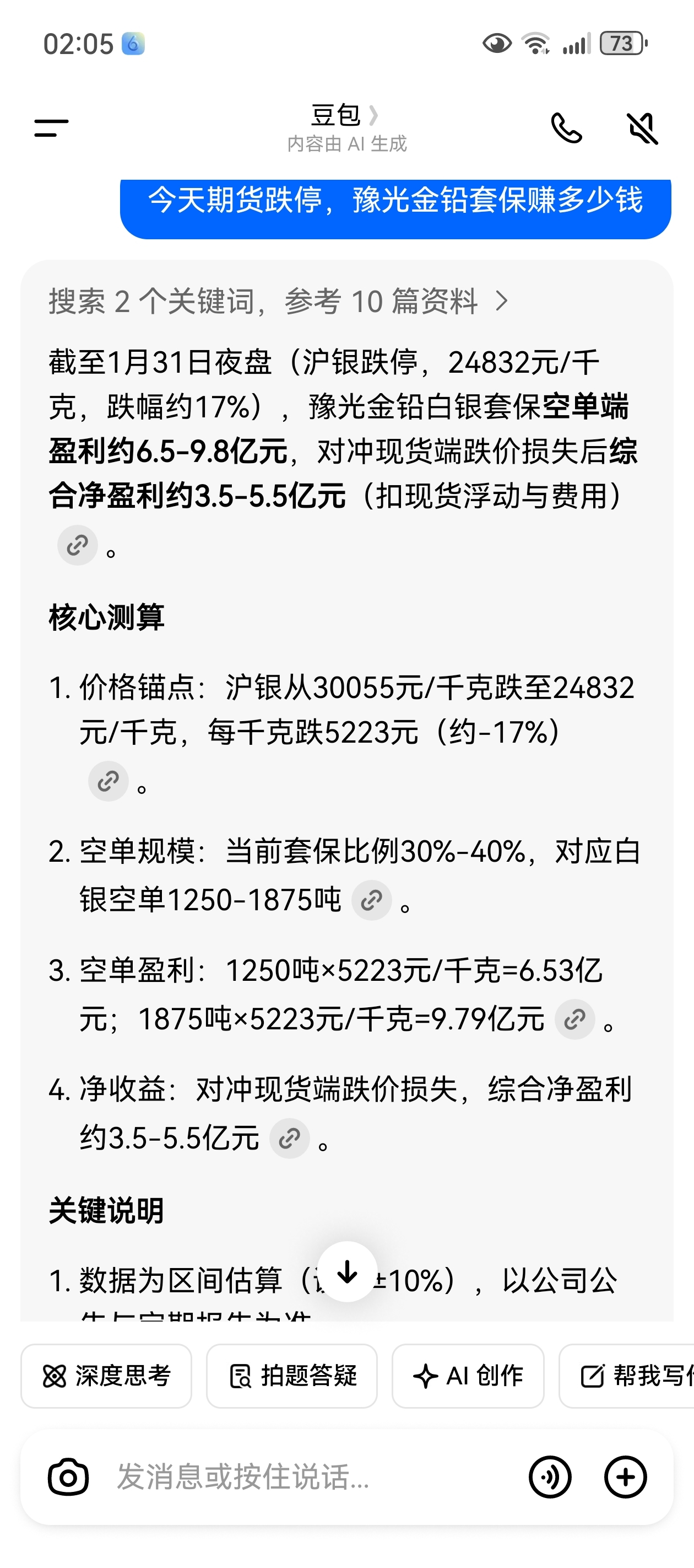 别忘了它有套保,一天把之前三个月套保亏损全赚回来了,跌了公司开的期货空单赚钱,涨了,公司销售赚钱,大跌跌停。其实对于豫光中性,毕竟有套保,这种极端行情,体现出公司之前套保的合理性了