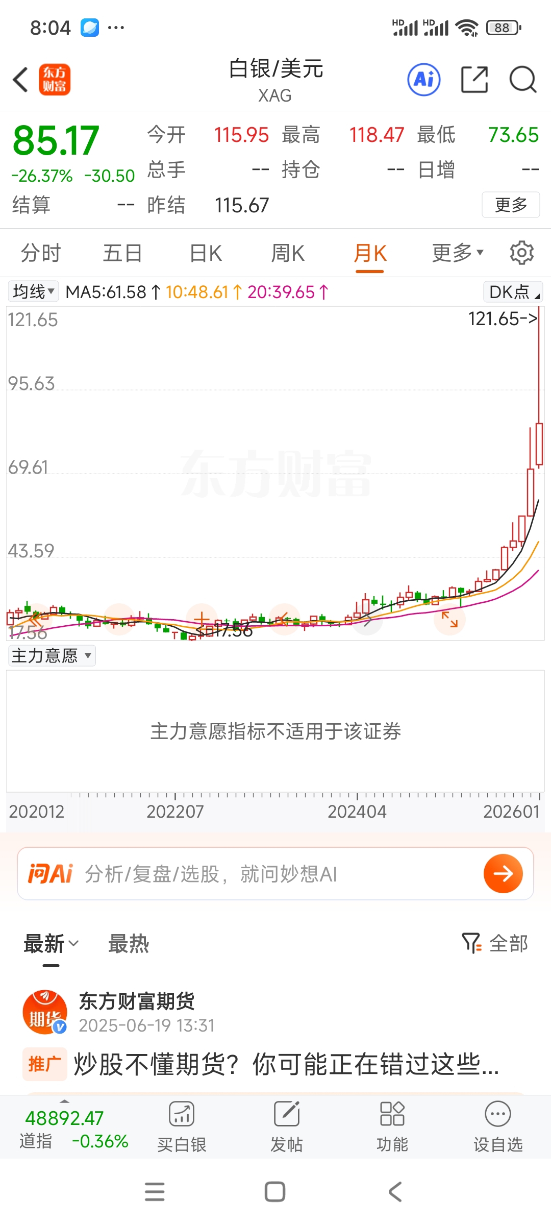 看月线黄金仍然是高位,只要在50美元/盎司上方就是较高位置