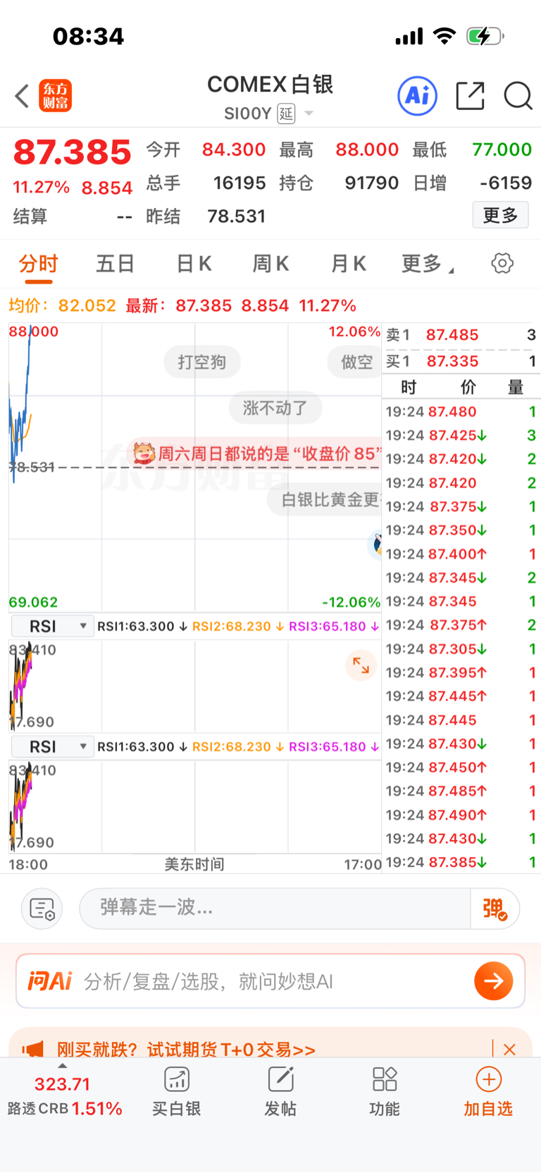 白银期货大幅反弹