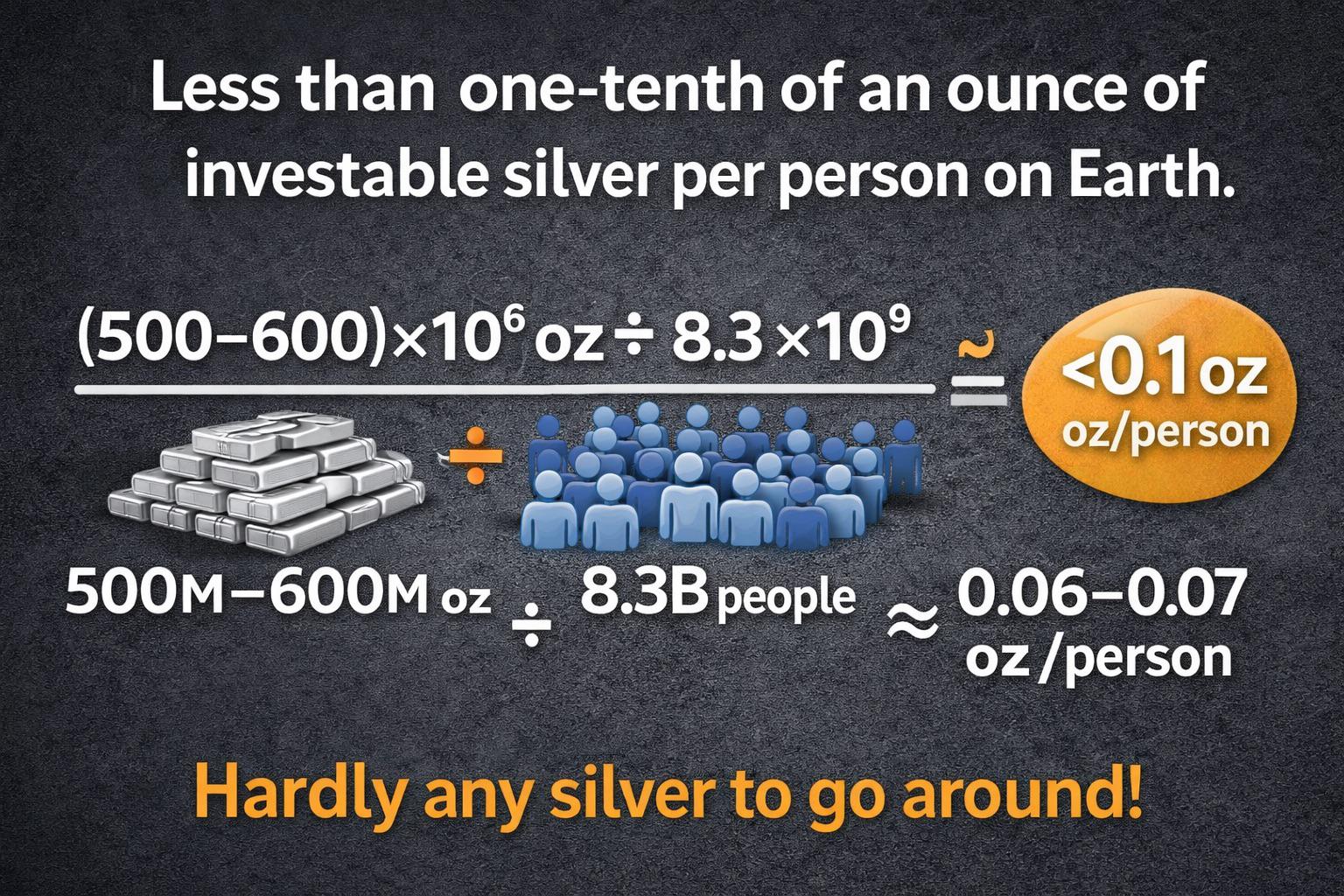 全球实物白银分配到每个人手里,只有0.06盎司